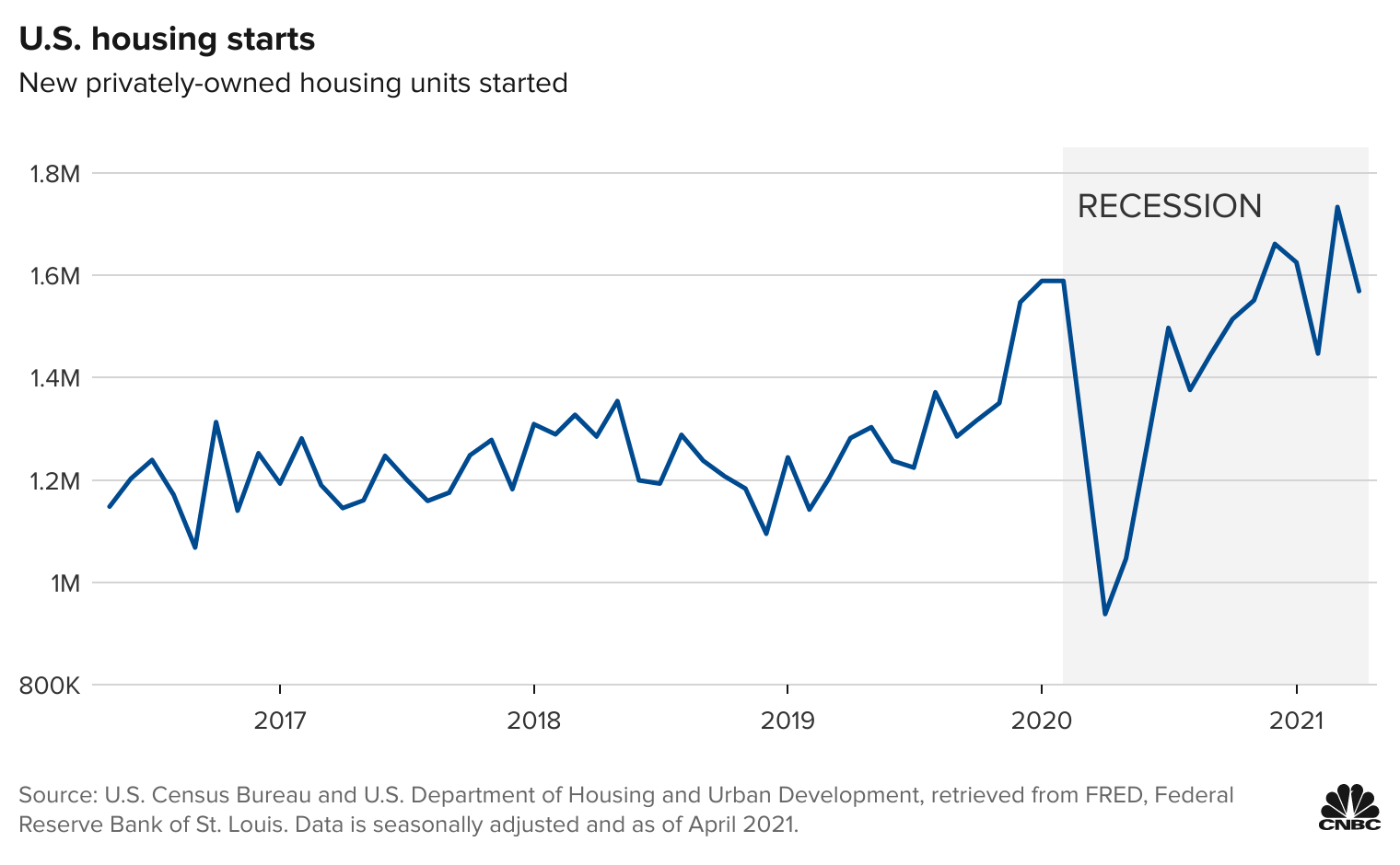 "I have to blame the difficulty in procuring lumber and other products, along with labor issues for the miss, in addition to likely cancellations due to skyrocketing costs for single-family starts," said Peter Boockvar, the chief investment officer at Bleakley Advisory Group.