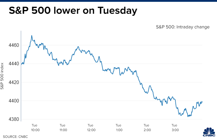 An early morning bounce in stocks gave way to selling on Tuesday, after the consumer price index showed the highest jump in inflation since 1981. The Dow Jones Industrial Average lost 87.72 points, or 0.26%. The S&P 500 dropped 0.34%, while the Nasdaq Composite declined 0.30%. Tech stocks continued to take a beating due to the prospect of higher interest rates. Consumer prices for March increased 1.2% month-to-month and 8.5% annually, the Labor Department said on Tuesday. The high headline numbers raised investor expectations of tighter monetary policy from the Federal Reserve, which could slow the economy. "I think the Fed has to continue at least 50-basis-point hikes for a number of meetings," Wharton School finance professor Jeremy Siegel said on CNBC's "Halftime Report" on Tuesday. One basis point equals 0.01 percentage points. "The Fed really has to get above 3%, 3.5% if it wants to slow the inflation, which I still think is moving through the system," Siegel said. |