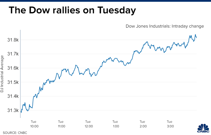 The Dow Jones Industrial Average surged more than 750 points on Tuesday, as Wall Street bets that markets are due for a relief rally. A Bank of America survey of professional investors found that the allocation to stocks in portfolios is at its lowest since October 2008, one month after the collapse of Lehman Brothers. Meanwhile, cash holdings are at their highest since 2001. The participants' bearishness suggests that the sellers are washed out, and stocks may rise from here. Traders were also positive on the succession of corporate earnings reports that showed businesses are working through economic pressures better than feared. "Both investors and the companies were expecting hot inflation, so companies talking about hot inflation having happened in that second quarter was not a surprise at all," said Kim Forrest, founder and chief investment officer at Bokeh Capital Partners. "What was a surprise was that they were able to manage through it well." | A stronger dollar also increasingly weighed on second-quarter results for some companies. Shares of IBM fell nearly 5.3% after the tech giant lowered its cash flow forecast, even as it reported earnings that beat Wall Street's estimates. Finance chief Jim Kavanaugh blamed the U.S. dollar and a suspension of business in Russia. Johnson & Johnson also cited a stronger dollar after cutting its full-year revenue and profit guidance despite robust results. Shares declined about 1.5%. "Trading is likely to remain very choppy, with more bear market rallies, in the months ahead," Wolfe Research's Chris Senyek wrote in a Tuesday note. |