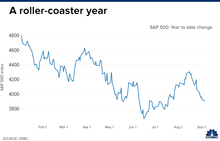 U.S. stocks slumped Tuesday, kicking off the short post-Labor Day trading week in the red. The Nasdaq Composite notched its seventh consecutive day of losses, a first since 2016. The session was marked with volatility as stocks tried to snap a three-week slide, but fell to the day's lows on stronger-than-expected economic data that spurred a sell-off in bonds. Yields on nearly all durations of U.S. Treasury bonds surged, with the rate on the 30-year closing at its highest level since 2014. The yield on the 10-year also touched its highest level since mid-June. Yields move inversely to prices. September is traditionally a volatile month. After three weeks of stocks sliding, investors may be wondering if they're nearing the bottom for markets. |
